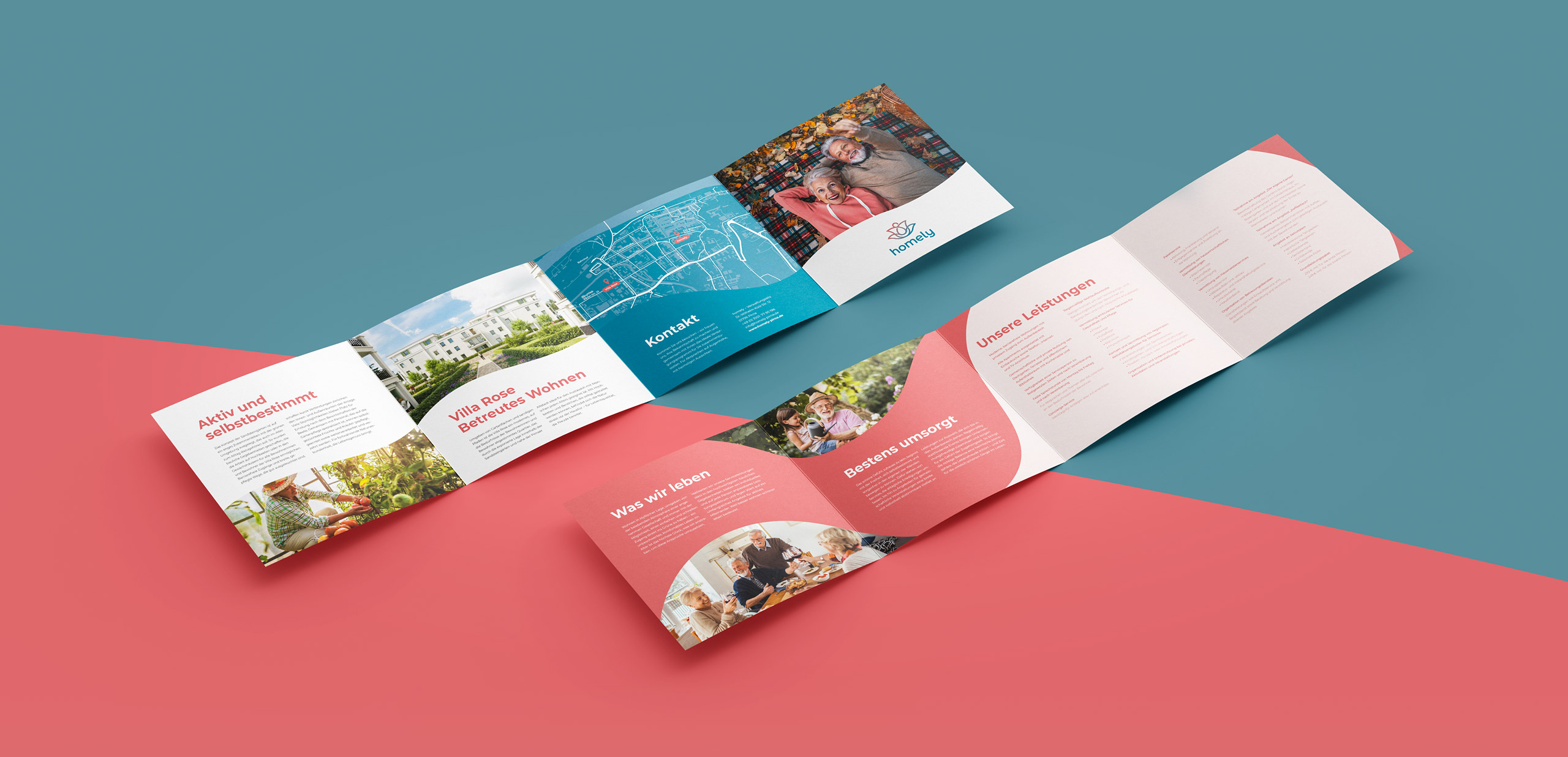 Das Verwenden organischer Formen mit weichen Bögen und Schwüngen durchzieht das gesamte Corporate Design und vermittelt Natürlichkeit, Harmonie und Einklang. So wird das Grundkonzept des Pflegedienstleisters, unbeschwert leben in enger Symbiose mit der Umwelt, auf Briefpapier, im Flyer, auf der Website oder sonstigen Kommunikationskanälen, stets repräsentiert.